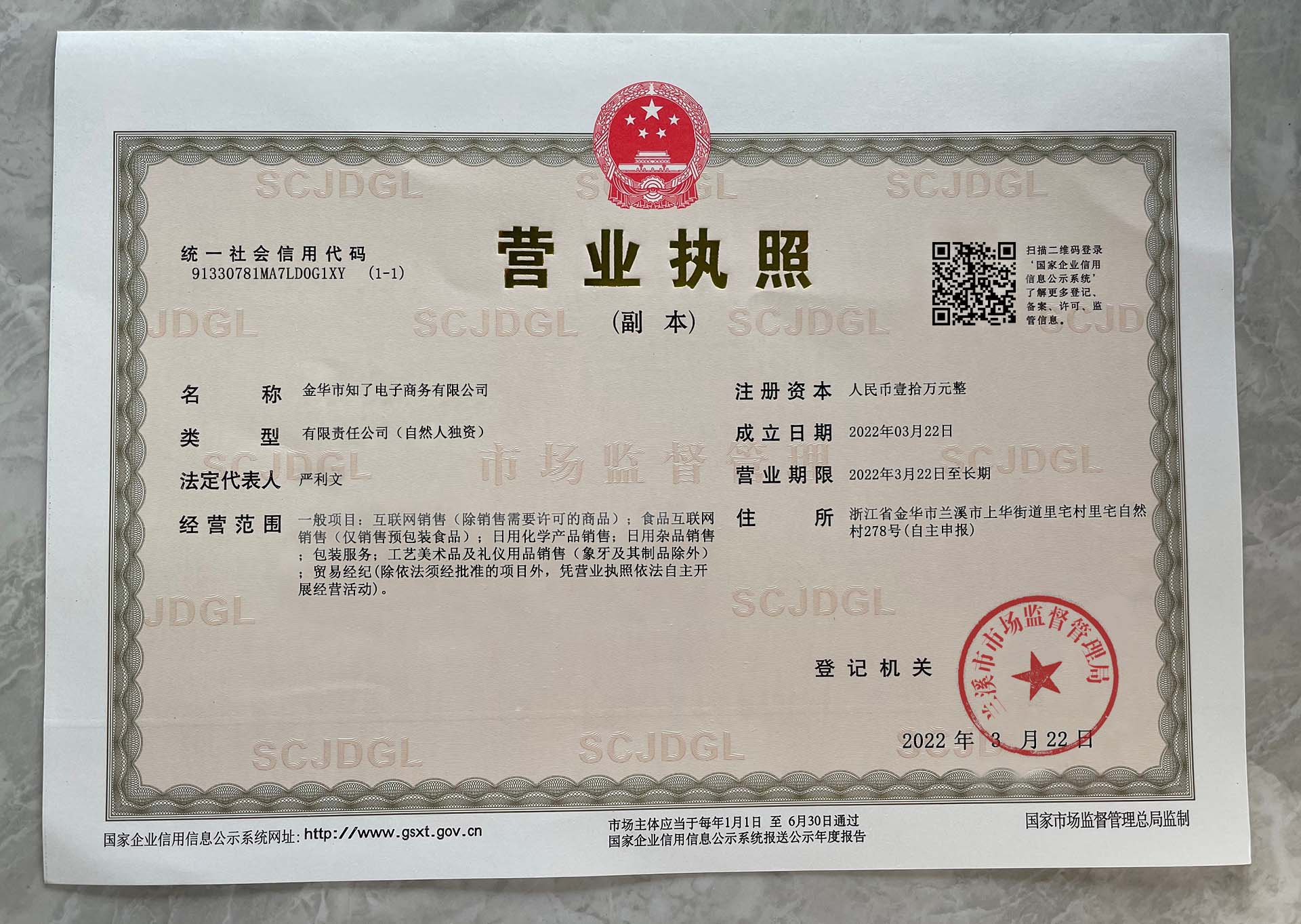 Corporate name:Jinhua Zhiliao E-commerce Co., Ltd